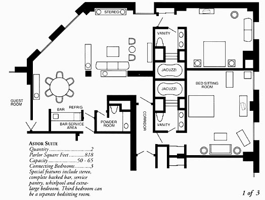 * The "Astor" and "Monarch" suites have the bedroom in the parlor, not multiple rooms.