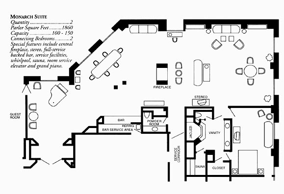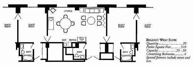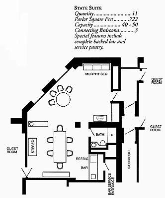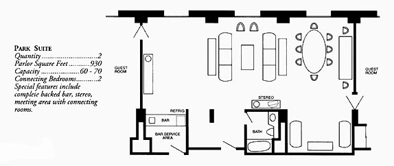 | Type | Parlor and One Bedroom | Parlor Only Rate | Parlor Square Feet | Maximum Number of Connecting Bedrooms | Number of these Suites | Amenities, Notes |